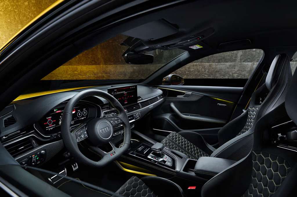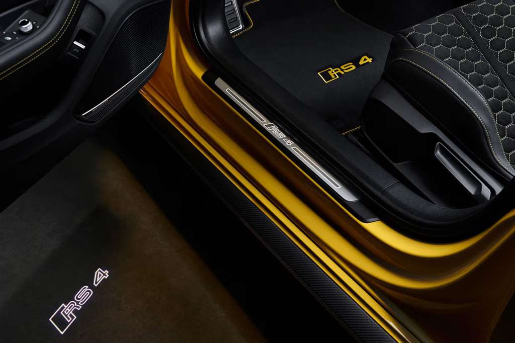 Inside, the anniversary edition features yellow decorative stitching, RS bucket seats with honeycomb stitching and carbon backrests. The steering wheel, gear gaiter and other elements are adorned with yellow accents, echoing the design of the original RS4 Sport. Additionally, each car is individually numbered and customers can opt for a suede steering wheel with yellow stitching.