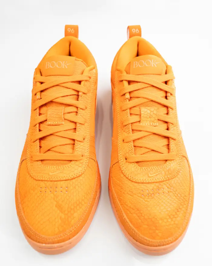 The orange Nike Book Chapter 1 worn on stage and previewed in Booker’s latest teaser is likely the “Clay Orange/Ice Peach-Campfire Orange” colorway, although that detail has not been officially confirmed.