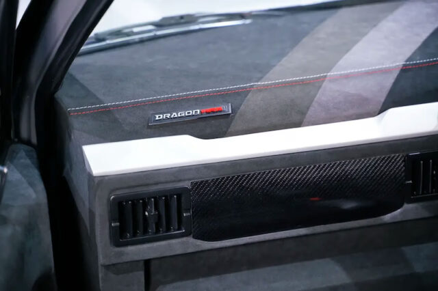 The upgrades don’t stop at the exterior or engine. Inside, the Dragonmax offers a sport-luxury interior that rivals some of today’s top-tier performance trucks. Outfitted with Alcantara-trimmed Recaro Premium Classic seats, the cabin marries old-school charm with new-school refinement. The bolstered seating isn’t just comfortable—it anchors the driver in place for a more connected, immersive experience.
