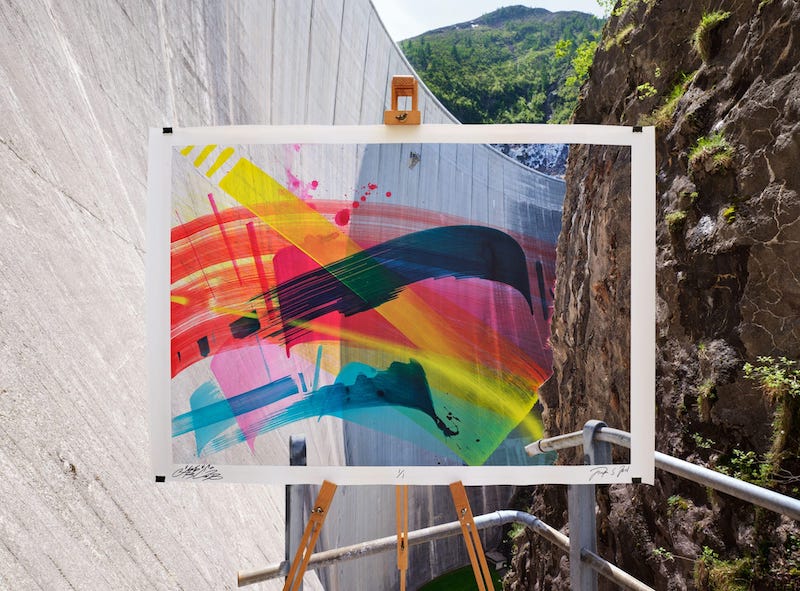 There is a quiet provocation embedded in Joseph Ford’s Impossible Street Art series, one that does not rely on spectacle so much as it repositions the viewer’s relationship to scale, access, and authorship. At a glance, the works appear playful—street art imagined at an almost absurd magnitude, stretched across dams, power plants, and industrial complexes. But beneath that initial impression sits a more pointed question: who gets to interact with the structures that dominate the modern landscape, and who is left to simply look at them from a distance?