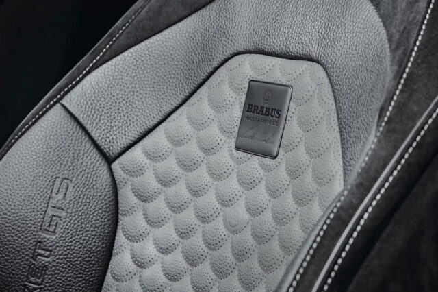 Step inside, and you’re greeted with a cabin that’s nothing short of luxurious. BRABUS didn’t skimp on the interior, with slate gray leather, black Alcantara, and their unique “Seashell Diamond” quilted stitching adorning every surface. The “Shadow Gray” trim and illuminated BRABUS logos are the cherry on top, adding an exclusive touch that reminds you this isn’t your everyday ride.