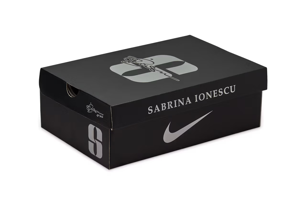 An “S” frame dictates the upper, where embroidered patterns salute Sabrina’s initials and number. The Swoosh strikes through the medial side of the shoe, “resembling shattered glass from the ceilings Sabrina continues to break,” per the brand.