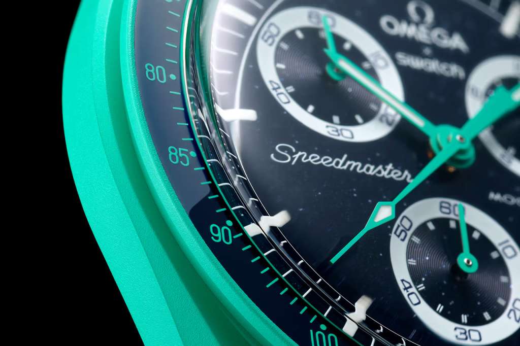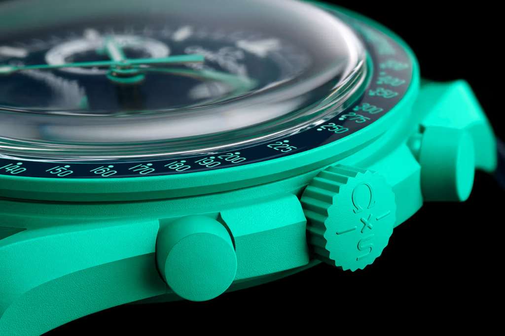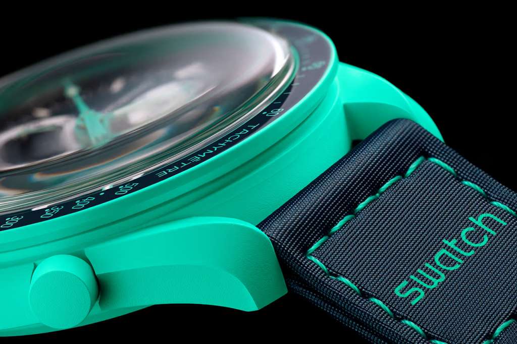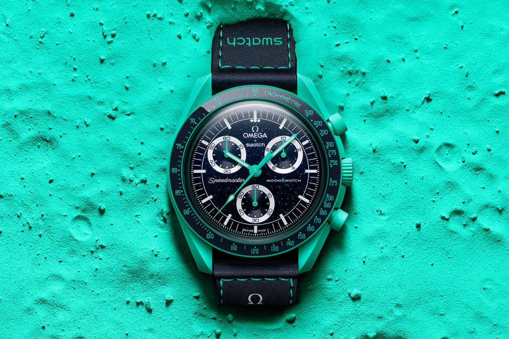 Every MoonSwatch since the surprise 2022 debut has focused on the celestial. With the new round of “Mission on Earth” models, Omega and Swatch are honoring their home planet. The Polar Lights model has an eye-popping 42mm, bioceramic turquoise case paired with an aventurine-inspired dial, the Lava, a bright orange case of the same size and material, and Desert, a relatively calm pairing of a sand-colored case with a taupe dial. All three are powered by quartz chronograph movements and will be available at select stores on Saturday, June 15th.